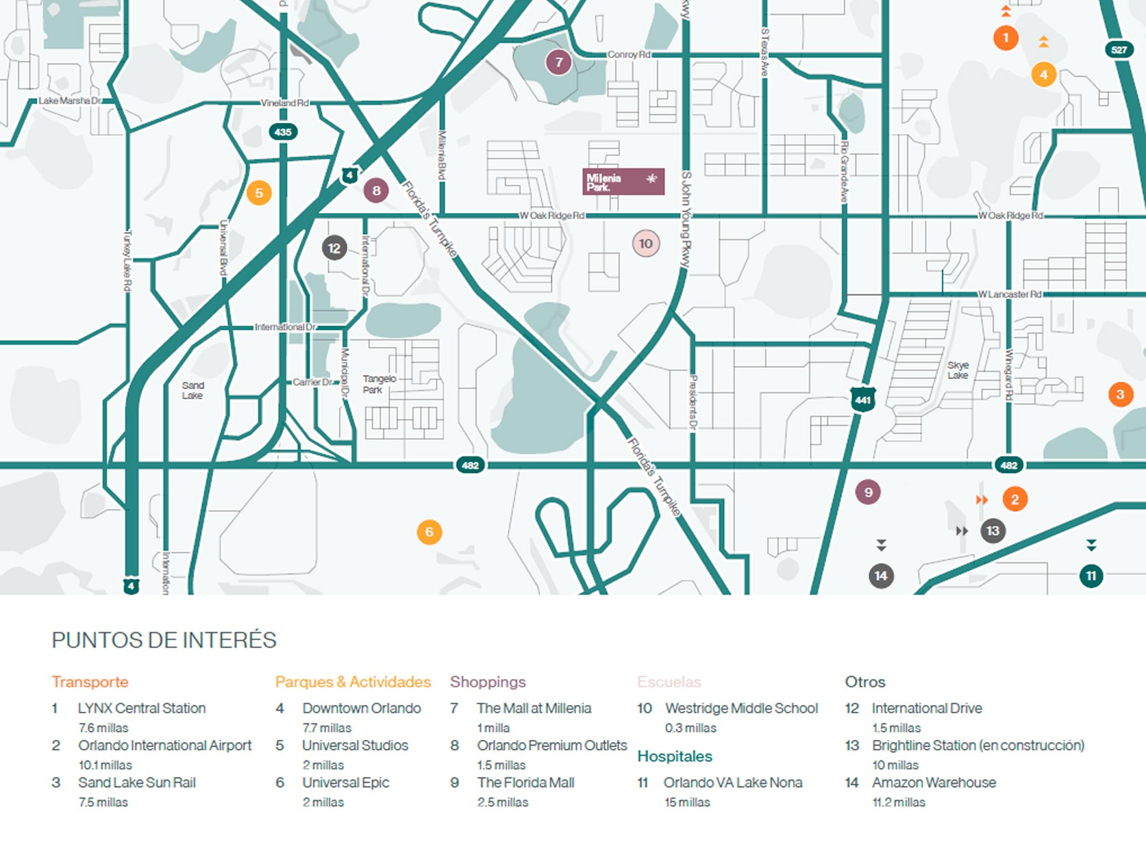 Este desarrollo se encuentra en una de las ubicaciones más atractivas de Orlando, a pasos del exclusivo centro comercial Millenia Mall y a tan solo dos millas de Universal Epic, el nuevo parque temático de Universal Studios.